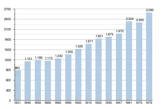 - Sources : INS, Rem. : 1831 jusqu'en 1970 = recensements, 1976 = nombre d'habitants au 31 décembre.