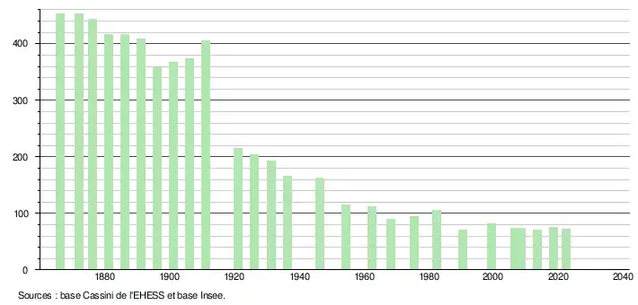 - ↑ Population municipale de référence en vigueur au 1er janvier 2025, millésimée 2022, définie dans les limites territoriales en vigueur au 1er janvier 2024, date de référence statistique : 1er janvier 2022.