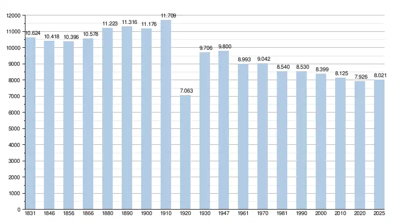 • Source : DGS - Remarque: 1831 jusqu'à 1981=recensement; depuis 1990=nombre d'habitants chaque 1er janvier[3]