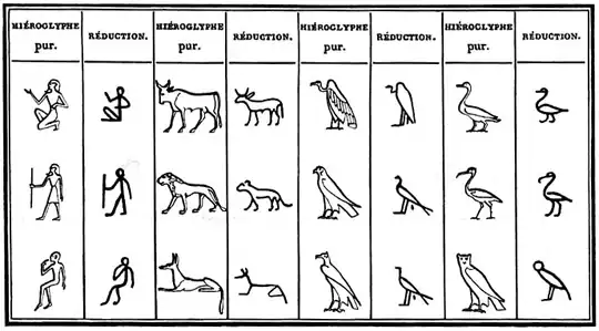 L'écriture en hiéroglyphe linéaire est une version simplifiée des hiéroglyphes égyptiens.