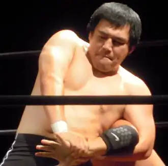 - ↑ (ja) « ja:諏訪魔が潮崎から"最後の"三冠ベルトを死守=全日本 », Sports Navi, Yahoo!, (consulté le )