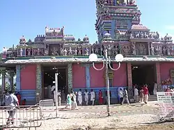 Fronton du Temple Narassigua Péroumal de Saint Pierre de La Réunion le 24 mai 2010. Une partie de la cosmogonie hindouiste y est représentée.