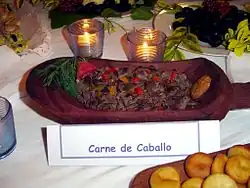 Lors de la colonisation des Amériques, les conquistadors emmènent leurs chevaux de guerre avec eux, dont un certain nombre retournent à l'état sauvage et sont chassés puis consommés par les Pehuenche, indigènes de l'actuel Chili et de l'Argentine. Les chevaux sauvages deviennent la principale source nutritionnelle de ces tribus indigènes nomades, dont l'économie originellement basée sur le guanaco adopte très vite le cheval. Les Pampas et les Mapuches deviennent des peuples cavaliers et hippophages[69].