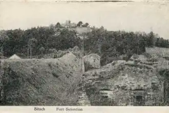 Le Reich réagit à la construction de la Ligne Maginot par la construction d'une ligne de défense frontalière, appelée le Westwall (le mur de l'ouest) qui est surnommé plus tard Ligne Siegfried par les Alliés. Le , deux jours avant la déclaration officielle de la guerre de la France à l'Allemagne, les cloches de l'église Sainte-Catherine donnent le signal de l'évacuation de la ville. Les réfugiés bitchois arrivent ainsi en Charente.