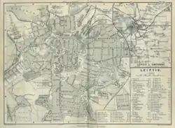 En 1831 fut introduit le règlement municipal saxon[27]. Il y avait désormais un conseil municipal, dont les membres étaient élus par le peuple, et un maire, qui porta à partir de 1877 le titre d'Oberbürgermeister. Dès 1874 Leipzig fut détachée d'arrondissement et devint ce que l'on appelle aujourd'hui une ville-arrondissement (Kreisfreie Stadt).