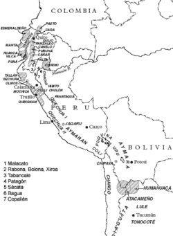 Tumaco-La Tolita (660 AEC - 400), culture Bahia (500 AEC-500), "Jama Coaque" (335 AEC-1532).