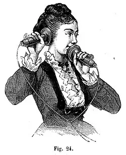 L'utilisation thérapeutique de l'électricité est probablement la seule application pratique de l'électricité en dehors des spectacles de divertissement. Sans que la théorie ne puisse encore l'expliquer, des résultats semblent être obtenus. Ainsi Jean Jallabert utilise une machine électrostatique en 1748 et déclare avoir obtenu une amélioration notable en dirigeant la décharge sur les muscles de l'avant-bras d'un patient paralysé[20]. L'électrothérapie se répand dans plusieurs pays : en Angleterre dès la fin des années 1760, en Italie avec les démonstrations anatomiques de Luigi Galvani vers 1770 ou en France où Jean-Paul Marat se voit décerner en 1783 le prix de l'Académie de Rouen pour son Mémoire sur l'électricité médicale[21].