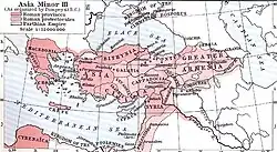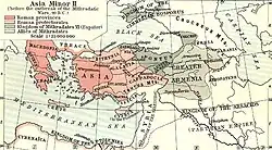 La campagne de Lucullus n’avait cependant pas éliminé complètement la menace de Mithridate ce qui lui valut, à son retour au pays, beaucoup de critiques. De plus, les pirates de Cilicie mettaient en danger l'approvisionnement de Rome. Pompée obtint alors les pleins pouvoirs pour combattre les pirates et Mithridate. En fin de compte, Mithridate se suicida en -63 et sa disparition permit à Rome d’ajouter à ses possessions le Pont devenu protectorat, en plus de la Cilicie devenue province romaine[6]. En dehors de l’orbite romaine il ne restait plus que la Galatie, la Pisidie et la Cappadoce, toutes trois régies par Amyntas, et rassemblées dans le dernier royaume qui n’était pas encore protectorat ou province romaine. Cependant, en -25, Amyntas mourut en poursuivant des ennemis dans les monts Taurus, et Rome annexa ses terres pour en faire une province, réunissant ainsi la totalité de l’Anatolie[27].
