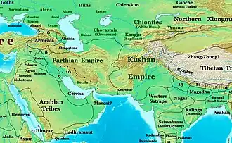- Empire Kouchan (Ier siècle av. J.-C. — IIIe siècle), s'étend jusqu'à l'Asie centrale à son apogée.