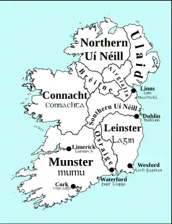 Dans les premiers siècles de notre ère, les chefferies celtes fusionnent progressivement pour constituer quatre royaumes (ou provinces) : l’Ulster, le Leinster, le Munster et le Connacht (Connaught). Au début du Ve siècle, un Ard rí Érenn (roi suprême d’Irlande) étend son pouvoir sur toute l’île, il siège à Tara capitale de Meath. Les autres rois lui doivent le boroma, tribut payable en bétail – son non-paiement entraîne des guerres dont la mythologie se fait l’écho, tout autant que les razzias.