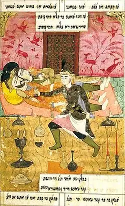 À la période ilkhanide, Shahin Shirazi (en)[8], un poète juif du XIVe siècle, élabore son œuvre monumentale, constituée de poèmes épiques, pleins de beauté lyrique. Ils sont rédigés en persan, mais en caractères hébraïques (ce phénomène linguistique juif existe aussi dans des écrits en langue arabe et en ladino)[2].
