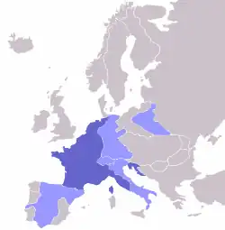 Ces nombreuses victoires permirent à la France d'étendre considérablement son influence de l'Europe occidentale à la Pologne. À son apogée en 1812, l'Empire comptait 130 départements, avait 44 millions de sujets, et était présent militairement en Allemagne, Italie, Espagne et dans le duché de Varsovie où Napoléon installa sur le trône des membres de sa famille, et comptait parmi ses alliés la Prusse et l'Autriche. De là s'exportèrent de l'idéologie français issue de la Révolution sur tout le continent. Certains vestiges du système féodal furent abolis, à l'image de la justice à double échelle qui différenciait nobles et roturiers. Les privilèges furent également supprimés. L'introduction du Code civil légalisa le divorce, établit des systèmes juridiques plus égalitaires. On estime aujourd'hui que les guerres napoléoniennes ont coûté la vie à plus de 6,5 millions d'Européens.