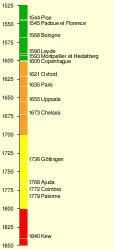 - 1545 : Fondation du Jardin botanique de Padoue et du Jardin des simples de Florence.