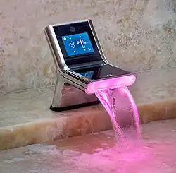 - Les hôtels avec des sanitaires toujours plus agréables et plus spacieux, notamment dans les hôtels de grand luxe du monde entier où le marbre côtoie l'or. « Le décorateur a réussi une parfaite alchimie envoûtante entre le bois, le marbre, l’or et la soie [...] les sols et les murs sont recouverts d’un magnifique marbre de Carrare au veinage rare, les meubles vasques, grandioses, sont entièrement plaqués de feuilles d’or 24 carats. Sur le luxe des salles de bain « le marbre au sol et sur les murs, robinetterie en or, voire dotée de diamants ». Au Georges-V : « ce grand palace est doté de superbes salles de bain avec robinetterie en or [...] les marbres sont donc de rigueur, cela va de soi[N 2]. »