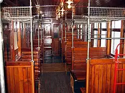 - ↑ Sièges rembourrés et recouverts de cuir rouge pour les premières classes.