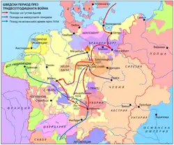 De 1618 à 1648, la guerre de Trente Ans ravage l'Allemagne : l'empereur, aidé par son cousin le roi d'Espagne, tente de soumettre les princes protestants mais subit une série de défaites contre la très eficace armée suédoise du roi luthérien Gustave II Adolphe de Suède jusqu’à sa mort à la bataille de Lützen (1632). La France intervient alors dans le conflit allemand et finit par dicter les conditions de la paix aux traités de Westphalie (1648) qui consacrent la quasi-indépendance des principautés par rapport à l'empereur. L'Allemagne, ravagée par les combats, les pillages, l'exode des populations et la peste, a perdu un tiers de sa population.