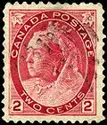 Pour la poste intérieure, le timbre violet courant de 2 ¢ était très demandé. Or, il n'était pas de la couleur rouge prescrite par le règlement de l'Union postale universelle pour le tarif postal intérieur. En guise de mesure provisoire, les postes ont mis une surcharge sur le timbre rouge de 3 ¢ pour en réduire la valeur nominale à 2 ¢. Ainsi, le est émis provisoirement le timbre carmin de 3 ¢ avec surcharge en noir, émission « feuille d'érable » de 1897 et le , sur celui de l'émission « numérale » de 1898.