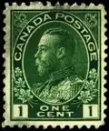 Une nouvelle série de timbres d'usage courant est émise le à effigie du nouveau roi. Mettant près de deux ans à se matérialiser et préparée par George V et John Alexander Tilleard[14],[15], cette émission est une adaptation de la série précédente de Victoria en remplaçant également les feuilles d'érable par des couronnes.