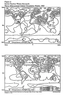 L'académicien russe Gueorgui Golitsyne a appliqué son modèle de tempête de poussière à la situation découlant d'une catastrophe nucléaire de grande ampleur[9].