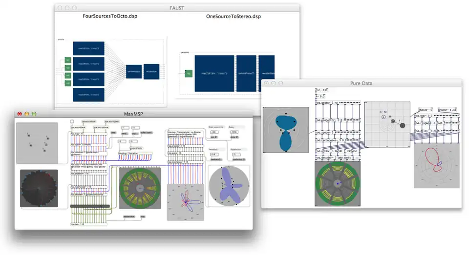 La bibliothèque HOA permet aux musiciens et compositeurs de synthétiser, transformer et restituer des champs sonores de façon créative et artistique. Cette bibliothèque facilite la compréhension et l’appropriation de concepts clefs liés à l’ambisonie via des interfaces graphiques originales permettant de nombreux traitements musicaux tels que la synthèse de champs diffus, la distorsion de la perspective ou le filtrage spatial[3].