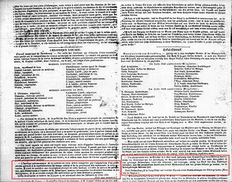 - ↑ et non 1842 comme on le lit souvent, notamment sur l'horloge elle-même. En fait, l'horloge a été inaugurée le 31 décembre 1842, mais seulement achevée le 24 juin 1843. La mention de l'achèvement de l'horloge par le globe céleste figure dans le "Courrier du Bas-Rhin" du 2 juillet 1843, page 2.