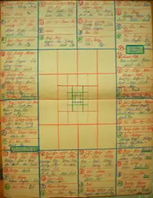 Un niveau plus élevé du Tử Vi est le Hà Lạc ou le Hà Lạc Bát Tự qui est une méthode de divination basée sur les mouvements des 64 Koua du Bagua, l'influence du yin - yang, le changement des cinq éléments, combinés avec les données principales du Tử Vi (l'heure, date du calendrier lunaire...). Ci-dessous, ce sont les deux plans chiffrés et colorés pour les études de Hà Lạc[18]: