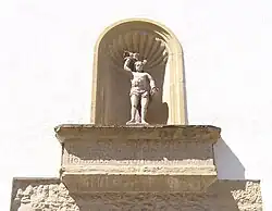 Sous une niche avec une statue de Saint Sébastien à gauche de l'entrée se trouve un chronogramme avec l'année 1674.