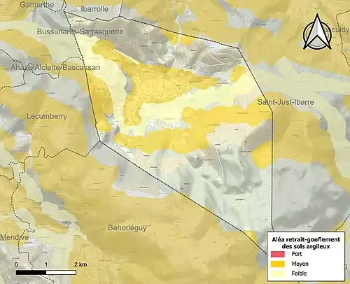 Les communes les plus proches[Note 3] sont[10] : Béhorléguy (4,1 km), Mendive (4,6 km), Ibarrolle (4,7 km), Saint-Just-Ibarre (4,7 km), Lecumberry (5,2 km), Bunus (5,9 km), Ahaxe-Alciette-Bascassan (6,3 km), Gamarthe (6,6 km).