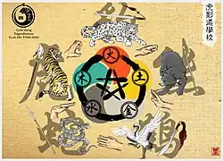 Le principe des 5 éléments[3] (ou des 5 mouvements) est suivi dans la progression des pratiquants de l'art martial selon :
