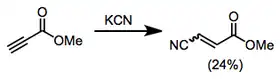 - RCH=CH2 + HCN ⟶ RCH2–CH2–C≡N.