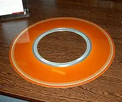 L’IBM 350, le premier disque dur, utilisait 50 plateaux (disques) d’un diamètre de 24 pouces (environ 60 cm) en métal, tournant à 1 200 tr/min, avec 100 pistes par face. Deux têtes de lecture/écriture pouvaient se déplacer d’un plateau à un autre en moins d’une seconde. Sa capacité en données était d’environ Mo et le débit de 8,8 ko/s ; son prix était de 50 000 $ US. Ce géant pesait plus d’une tonne et sa taille était équivalente à deux grands réfrigérateurs. Commercialisé à partir du , il s’en est vendu plus d’un millier d’exemplaires en cinq ans[1].