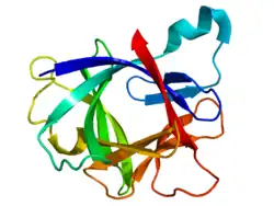 • l'IL-1β, sa forme principale, intervenant dans la cascade de réaction comportant différentes molécules décrites sous le nom d'inflammasome[11].