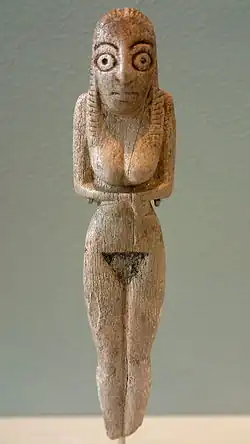 - Vers 3300-2800 av. J.-C. : apparition de l’État et de l’écriture en Iran du sud-ouest, dit civilisation proto-élamite (Suse III)[49]. La Susiane paraît opérer un retournement vers l’Iran aux environs de 3100 av. J.-C. La plaine ou bas pays, avec Suse, est alors étroitement associée à la montagne (Anshan). L’art exprime clairement l’appartenance de Suse au domaine iranien : les sceaux, moins diversifiés qu’à l’époque d’Uruk, mettent en scène des animaux en mouvement ou pratiquant des activités humaines ; des statues apparaissent qui ne peuvent être confondues avec celles de Sumer. Des tablettes à l’écriture non sumérienne, très nombreuses et parfois de grand format, sont l’indice d’une gestion économique très poussée. Suse apparaît comme un centre d’échanges actifs en relations étroites avec Sialk au nord-est, Tepe Yahya au sud-est et Shahr-e Sokhteh au-delà du désert de Lut.