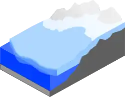 - ↑ En 1956, un iceberg dans l'Antarctique aurait été estimé à 333 kilomètres de long et 100 kilomètres de large, soit 33 300 km². Enregistrées avant l'ère de la photographie par satellite, les dimensions estimées de cet iceberg sont moins fiables.