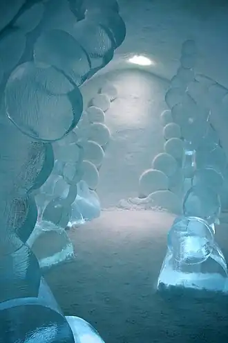 L'hôtel de Jukkasjärvi fut le premier hôtel au monde construit en glace[2]. D'autres hôtels de ce genre ont vu le jour depuis au Québec[3], en Norvège[4] et en Finlande[5].