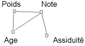 Par exemple, retirons la composante de l’âge, dont l’influence, prépondérante, est bien connue. Le schéma révèle alors l’influence directe de l’assiduité sur la note. L’âge a disparu de la figure, ainsi que sa composante dans toutes les variables. Et le poids se trouve isolé.