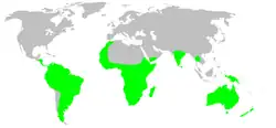 Les espèces de cette famille se rencontrent en Océanie, en Afrique, en Amérique du Sud, en Amérique centrale, en Asie du Sud et en Asie du Sud-Est[1].