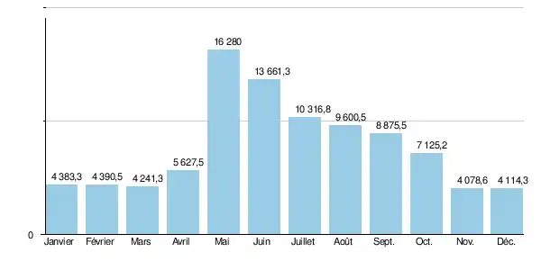 | Mois | jan. | fév. | mars | avril | mai | juin | jui. | août | sep. | oct. | nov. | déc. | année |