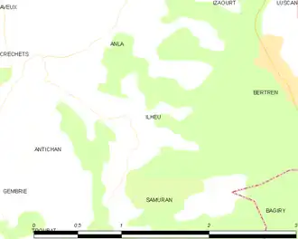 - ↑ Géoportail, « Limites cadastrales des communes d'Ilheu, Bertren, Bagiry et Samuran », sur tab.geoportail.fr (consulté le ).