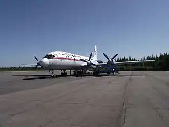 L'Iliouchine Il-18 (en russe : Илью́шин Ил-18, code OTAN : « Coot », littéralement « Foulque ») est un grand avion de ligne quadri-turbopropulseur qui a volé pour la première fois en 1957 et est devenu l'un des avions soviétiques les plus connus et durables de son époque. Entré en service le [3], l'Il-18 est l'un des principaux avions de ligne du monde depuis plusieurs décennies et a été largement exporté. En raison de la longévité de la cellule de l'avion, de nombreux exemplaires ont réalisé plus de 45 000 heures de vol, et le modèle reste opérationnel dans les armées et — dans une moindre mesure — dans le monde civil. Le successeur de l'Il-18 est l'avion de ligne long courrier Il-62.