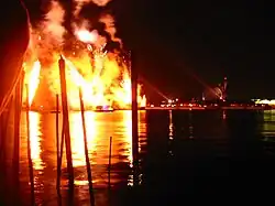 À la fermeture du parc, la barge s'éloigne de toute construction et le reste de propane est brûlé dans une explosion, donnant un tout autre sens au nom de la barge.