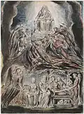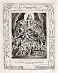 - ↑ Geoffry Keynes (Drawings of William Blake: 92 Pencil Studies, New York, Dover Publications, 1970) rapproche ce dessin de cette gravure des Illustrations.