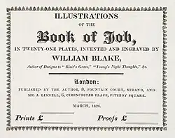 En 1823, Linell charge officiellement William Blake de graver les plaques pour impression, suivant la technique de la taille-douce ; le travail est achevé en 1825 et l'édition est publiée en : vingt-deux gravures (dont la page de titre) ; 315 exemplaires sont imprimés. Les gravures sont entourées de motifs décoratifs complexes, où s'insèrent des citations et des paraphrases bibliques choisies par Blake.