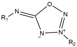 Ils possèdent une charge positive et une charge négative délocalisées sur le cycle et sont pour cette raison des composés dipolaires. Ils ont de nombreuses applications en biologie chimique (chimie bio-orthogonale et chimie click) en tant qu’intermédiaire pour la modification de biomolécules ou de relargage de composés actifs[1]. Ils sont également utilisés comme médicaments tels que le mésocarb ou la molsidomine.