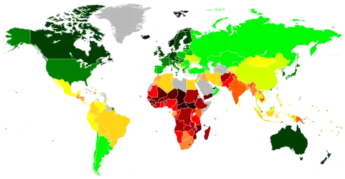 - ↑ Rapport sur le développement humain des Nations unies, version 2001.