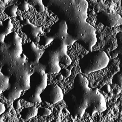 Une autre version la considère comme le résultat d'une puissante éjection de certains gaz (volcaniques ou même radiogéniques), qui ont éliminé le régolithe. Dans ce cas, les collines sont des endroits où le régolithe d'origine a été préservé.