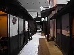 - Les dozō sont des magasins avec d'épais murs en terre plâtrés et des toits de tuiles dans la plupart des cas. Leur résistance au feu rendue possible par leurs murs épais les rend idéal pour stocker les produits, les biens ménagers, les outils et les objets de valeur. Cependant, ils peuvent aussi souffrir de faiblessess causées par une construction fautive et un entretien insuffisant, laissant entrer les incendies par les fissures dans les fenêtres et les entrées ainsi que par les trous de souris, avec pour conséquence un possible effondrement. Pour cette raison, les riches marchands préparent la terre de telle sorte que leurs plâtriers attitrés puissent rapidement sceller leurs dozō lorsque les incendies se produisent. Il y a aussi des cas où, quand ils sont eux-mêmes auteurs de feux, ils laissent ouvertes les portes de leur dozō et les laissent brûler en forme d'expiation publique[41]. Des dozō spécialement fortifiés pour le stockage de documents appelés bunkogura (文庫蔵) existent mais n'ont jamais été populaire en raison de leurs coûts de construction encore plus élevés, même s'ils sont assez forts pour supporter de grands incendies. D'un autre côté, il y a aussi des résidences et des entreprises appelées misegura (見世蔵) construites pour ressembler à des entrepôts. Cependant, leur résistance au feu doit être plus ou moins compromise pour tenir compte des larges ouvertures nécessaires à un usage professionnel. Les Misegura qui ont survécu jusqu'à nos jours sont maintenant situés principalement dans les villes de Katori (Sawara), Tochigi et Kawagoe, et donnent à ces villes et à leurs quartiers le nom de « petite Edo » (「小江戸」).