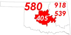 Le , une première scission de l'indicatif 405 a créé l'indicatif 918 qui couvre le nord-est de l'État.