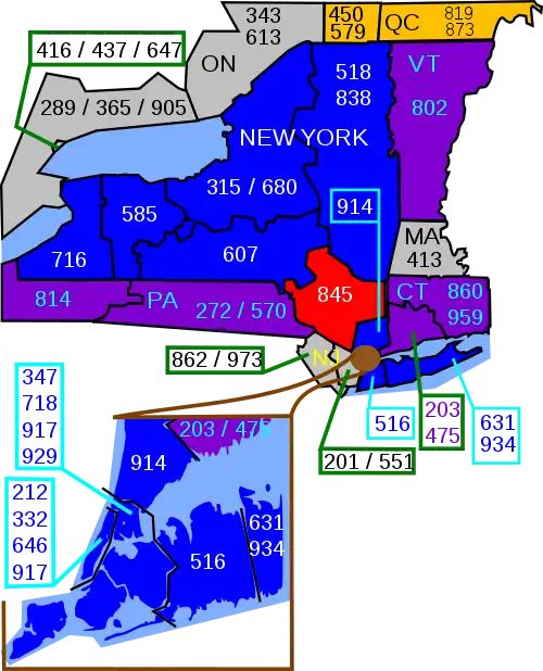 Cet indicatif dessert une région située au nord de la ville de New York.