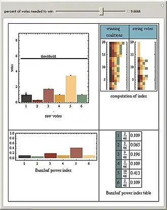 - Downloadable Excel Weighted Voting System Calculator Présente les indices de Banzhaf et Shapley.